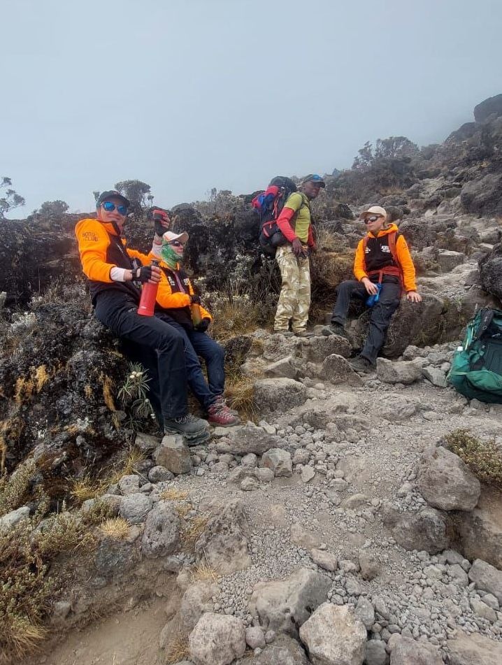 The 7 Summits Club team "7+7" today reached the Horombo camp at an altitude of 3800 meters. This is the Marangu route on Kilimanjaro. It is raining, but we are not giving up.