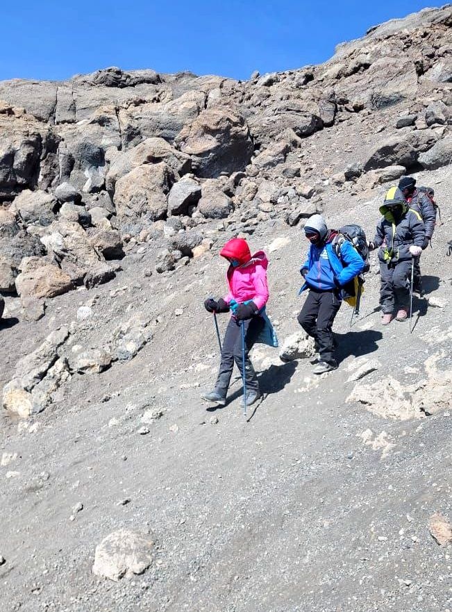 I won't lie, the last few kilometers were incredibly difficult. By this point, everything was aching, but we persevered, kept up the pace, and continued down. It's no joke, we covered 40 km that day, including the summit push.