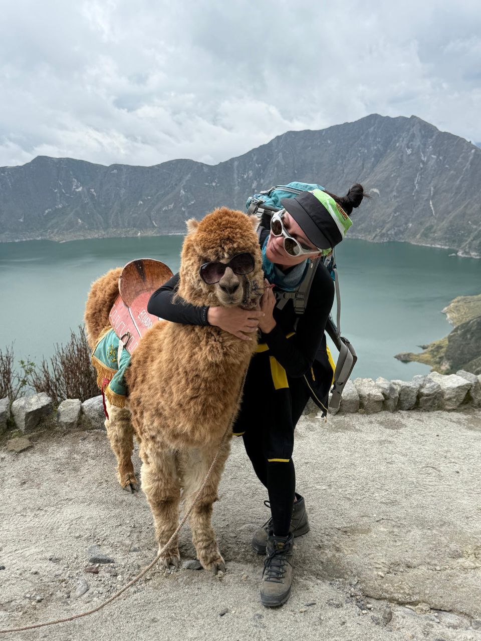 Hello, dears! This morning enjoyed a wonderful view of the Cotopaxi for breakfast.  We even watched a fly of a hummingbird, but did not have time to take a picture of it. After breakfast we went to the parking  at 4600m on the slope of volcano Cotopaxi, reached the glacier, held ice-snow classes for the guys and reached a height of 5200m. On road down was greeted Andian wolf and again local hares. The nature of Ecuador never ceases to amaze!