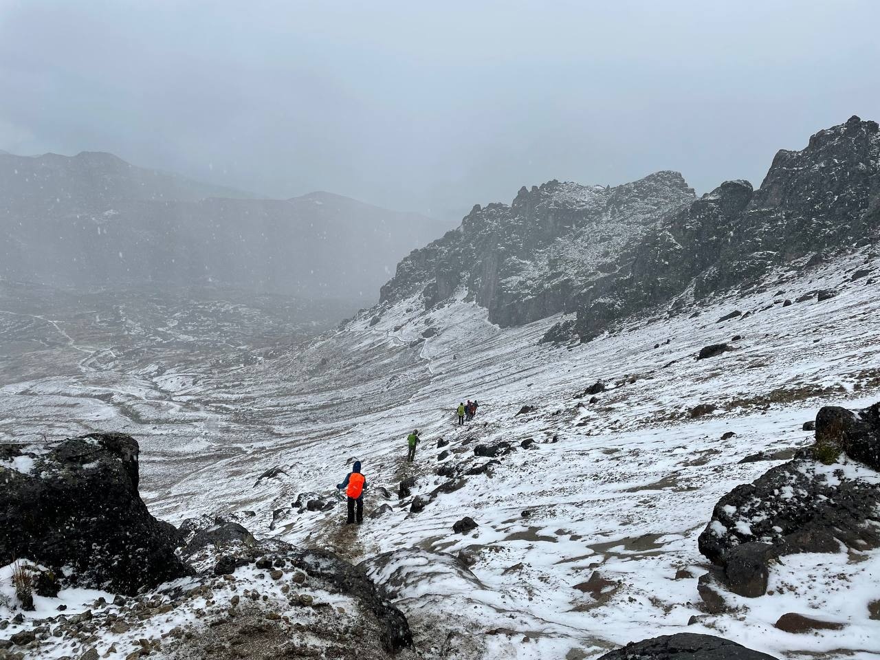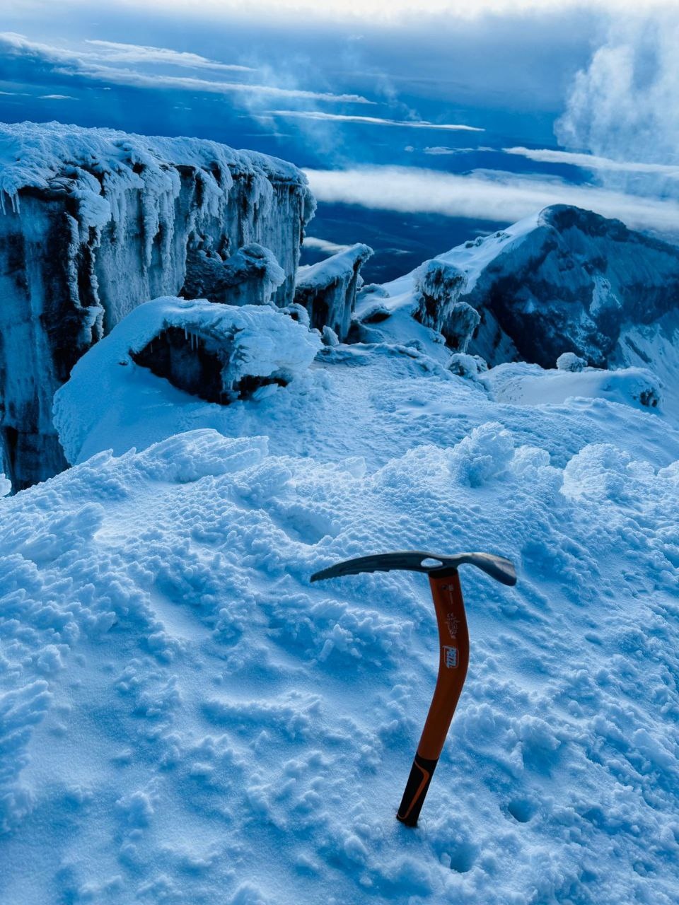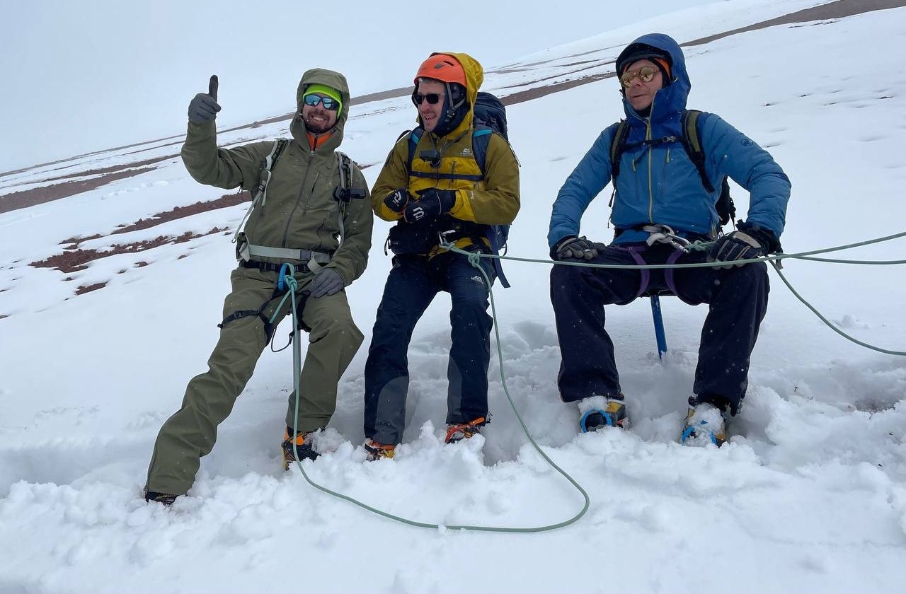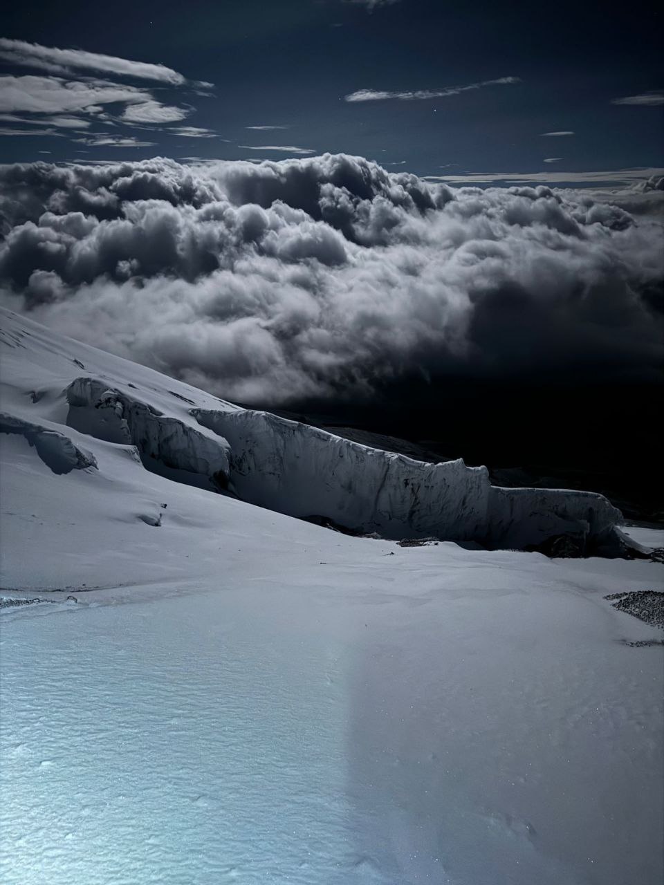 News of the Super Cui Team. We climbed up in a thunderstorm to camp 5350 on the slope of Mount Chimborazo. Here we were waiting for tents in the snow. We were caught in a thunderstorm on the way. Lightning struck the ridge, we threw all our things and lay in the snow for 30 minutes. Then it got better and we continued climbing.