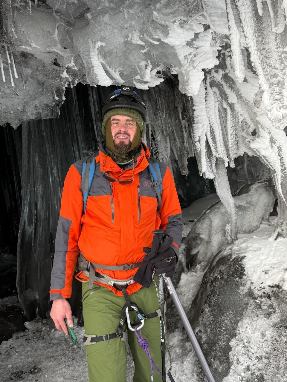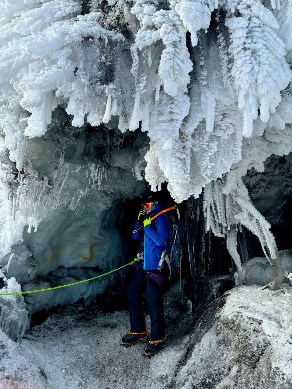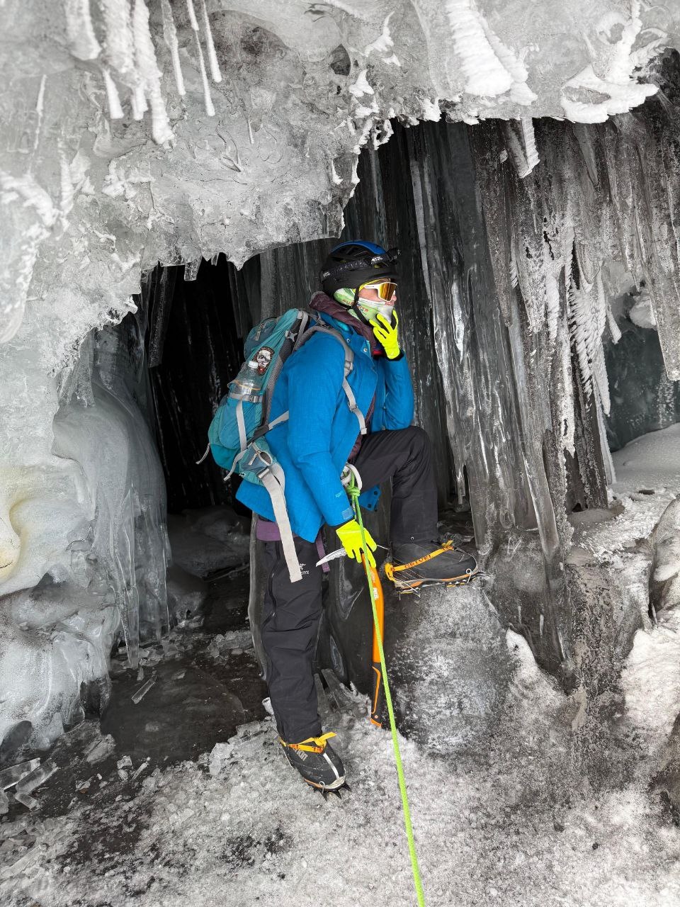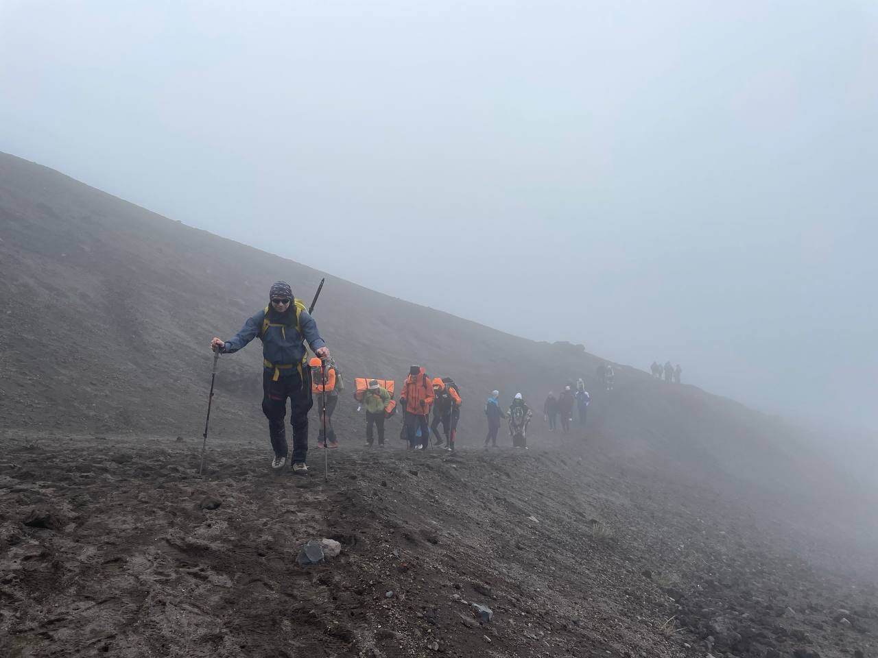 The glacier is partially destroyed, as 4 years ago there was an eruption. Movement on the glacier is very confusing. 100 m from the top, we began to choke on the sharp smell of hydrogen sulfide.