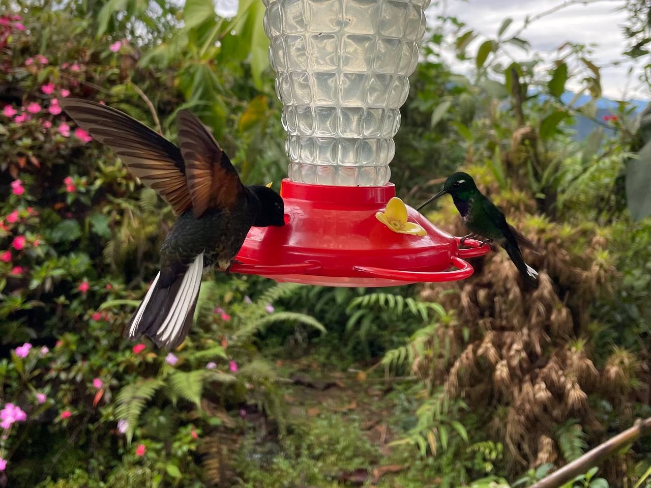 Hello to everyone from Ecuador, where our group continued its exciting acclimatization today! Early in the morning we went into the jungle to look for birds. We didn't find many birds, but a lot of different hummingbirds flew to the site of our hotel. They flew around us and buzzed with their wings. Then we went to the butterflies.
