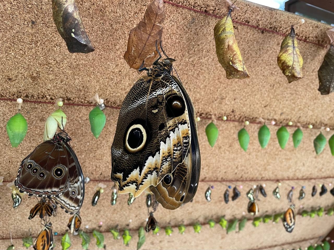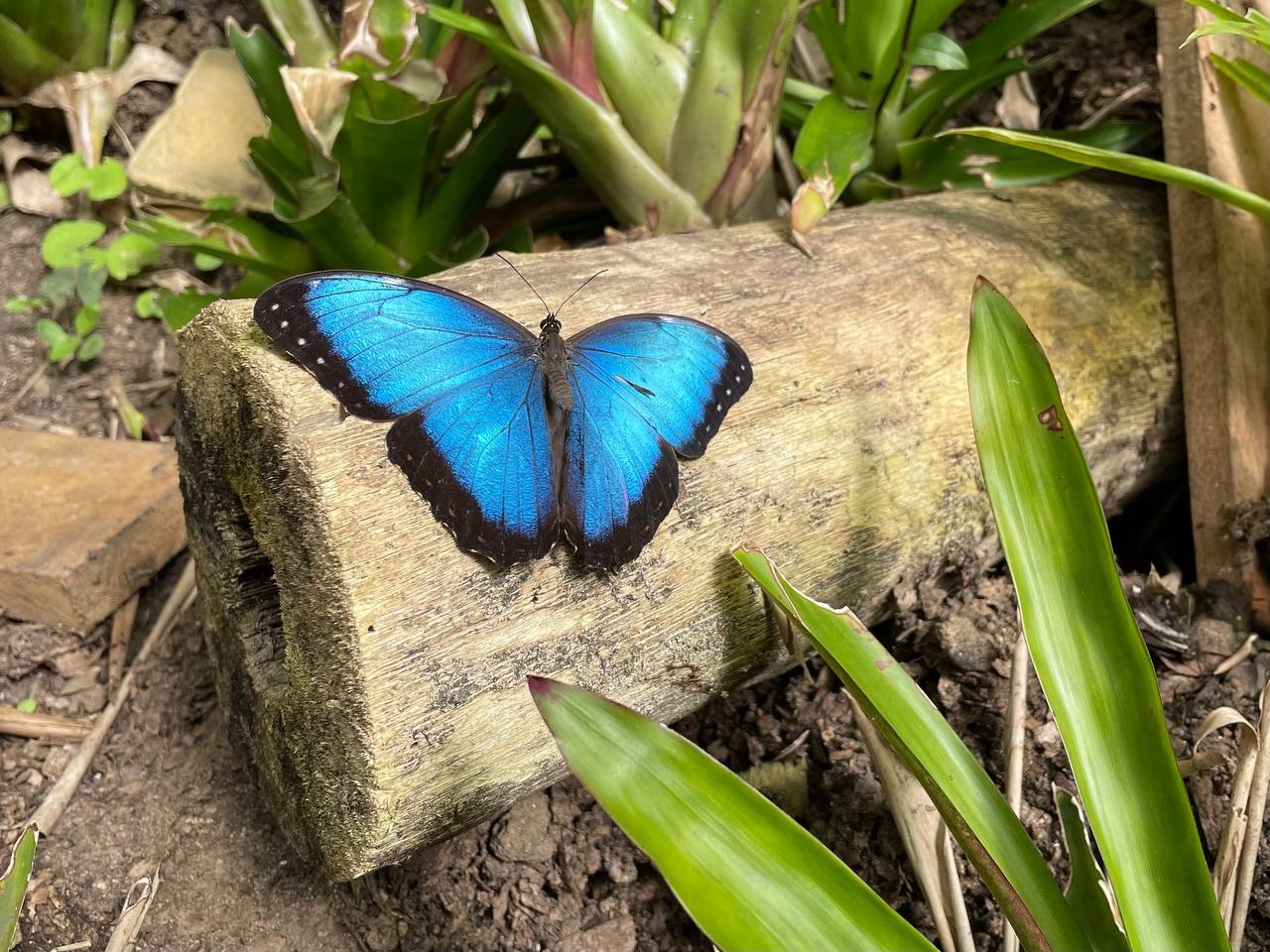 An amazing place where thousands of different butterflies fly, but the most beautiful are the big blue ones. You can also feed the butterflies there and see how they hatch from their cocoons.