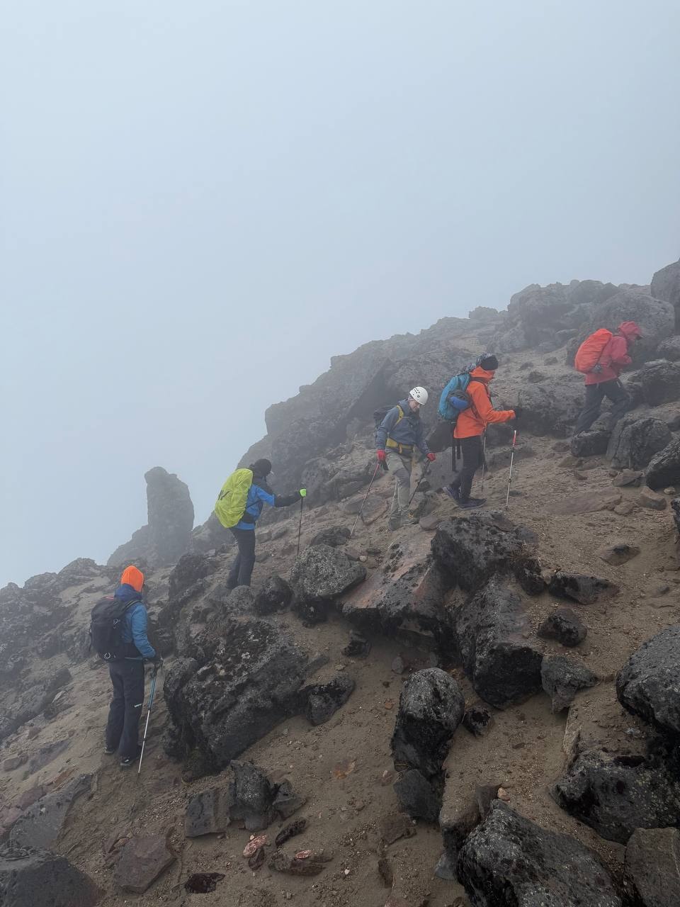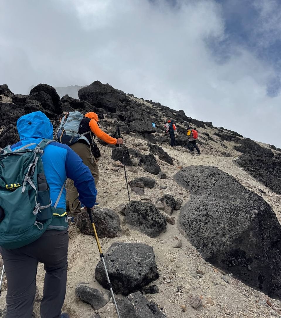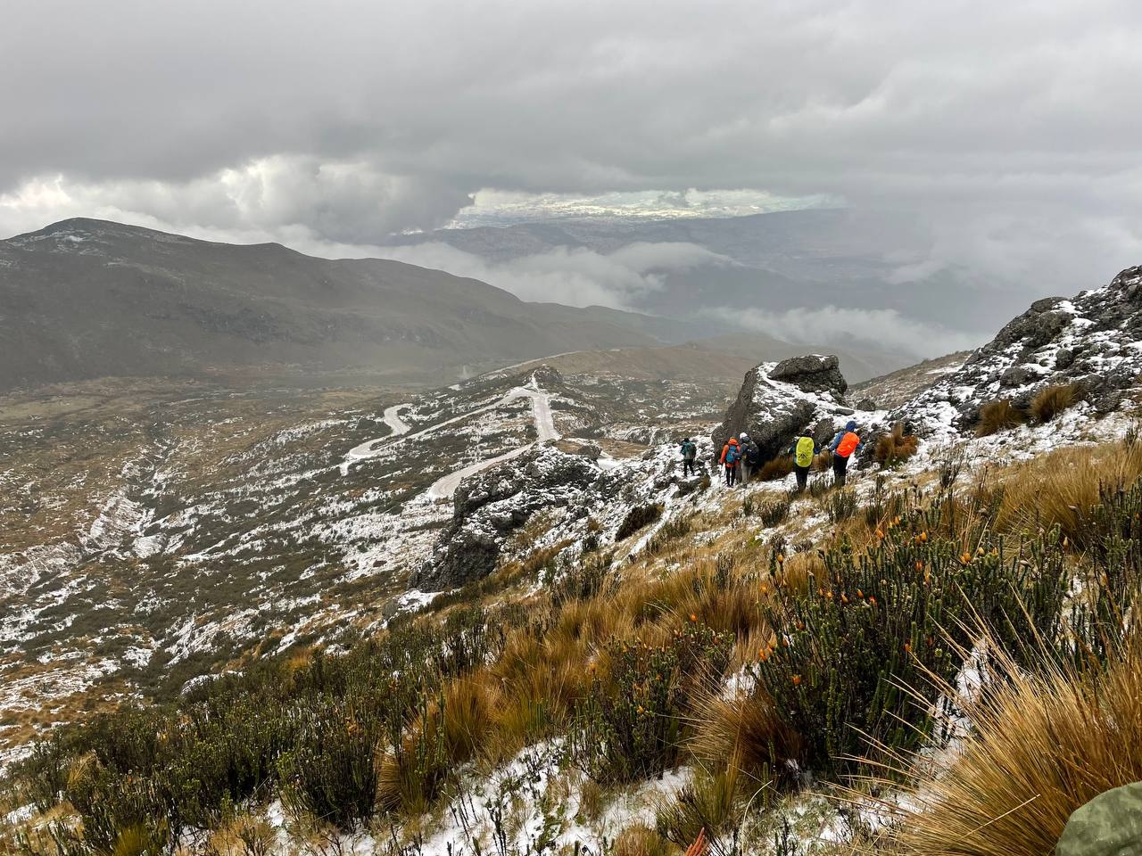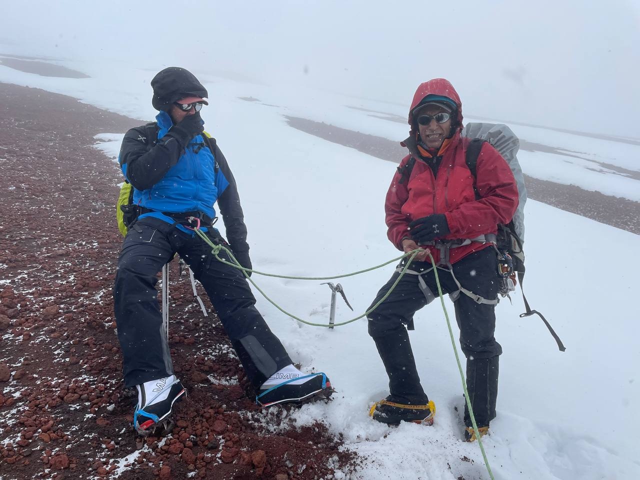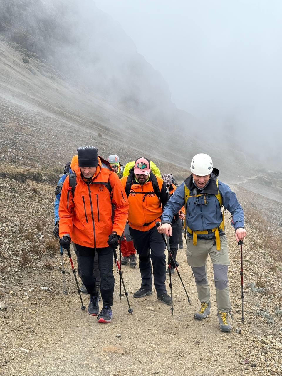 Today, our group had a day of altitude acclimatization on the Cotopaxi Glacier. We reached the mountain slopes and ascended to approximately 5,000 meters. The weather was unfavorable—wind, sleet, and the possibility of a thunderstorm—so we decided to descend earlier than expected.