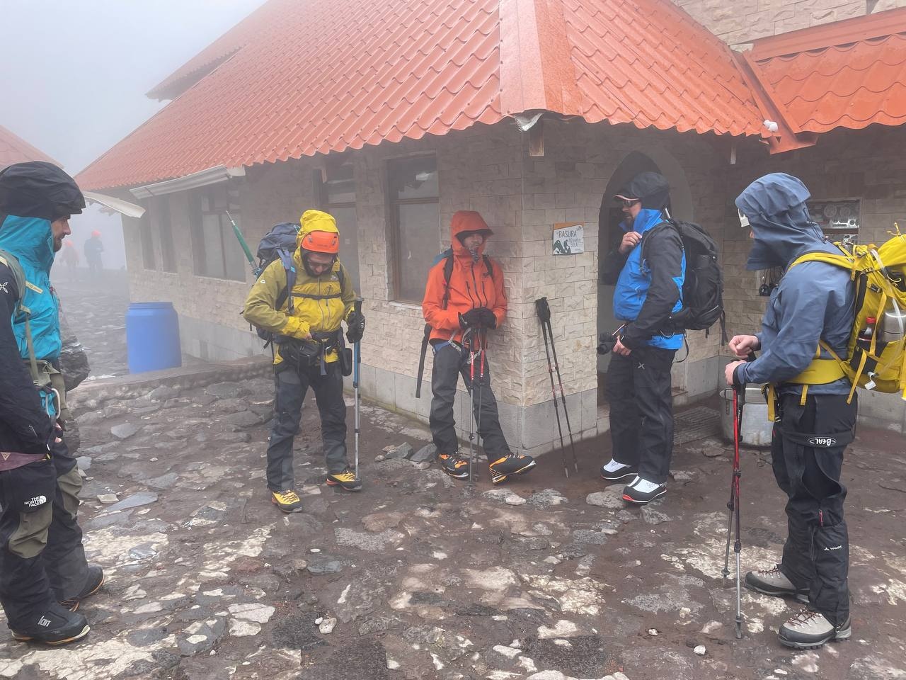 We climbed to the refuge, where we will spend the night before the climb. Then from there we climbed even higher - to the snow and there we practiced the skills of using mountaineering equipment.